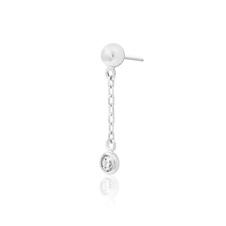 Experience true elegance with Daphne. A solid 14k gold ball end with a delicate 2mm CZ clear gem at the end of a 14k dangling chain.