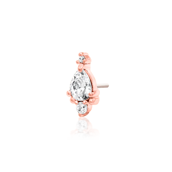 Amelia measures 3.8mm x 8mm with 3 CZ stones (0.8mm, 1.5mm 4x3mm) and is available in Yellow, Rose and white gold, the Amelia end pairs well with any APP approved post.