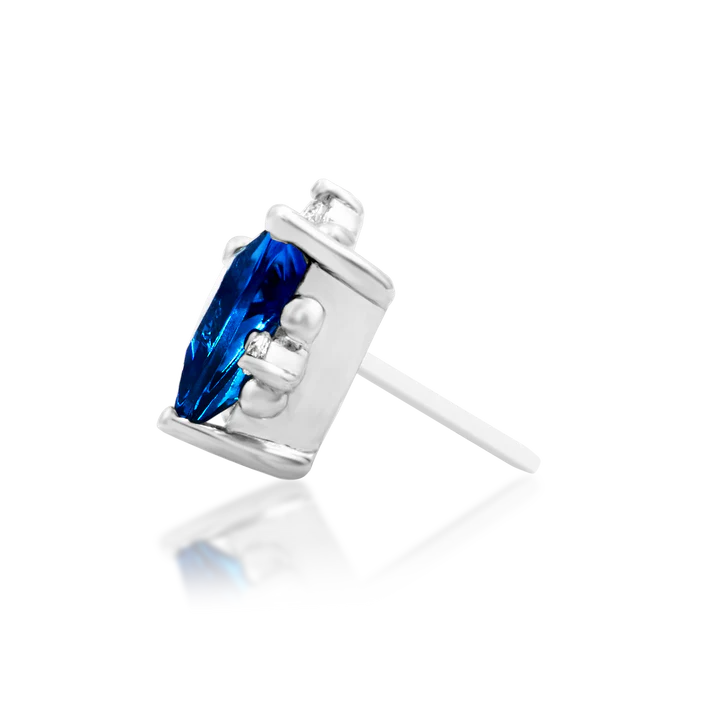 Enlee is a celestial spark, a constellation of brilliance captured in an earring. A vibrant sapphire, cut with precision into a captivating triangular shape, takes center stage, radiating an otherworldly glow.