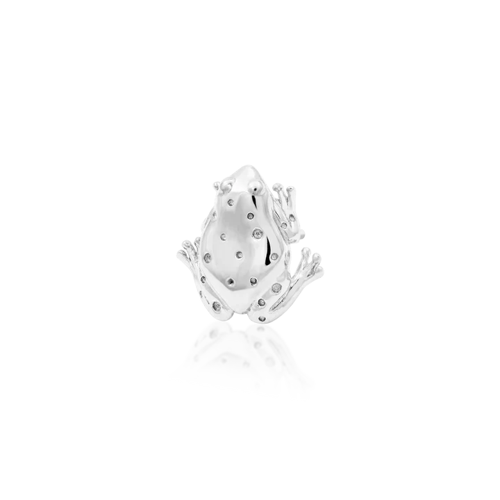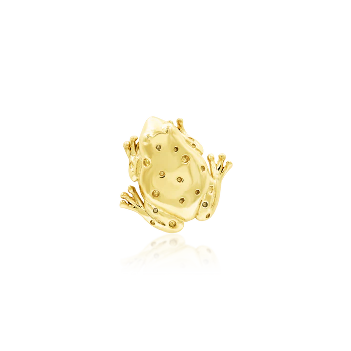 Sir Hops is a full 3D handcrafted 14k solid gold frog, complete with little feet and little hammered spot details.