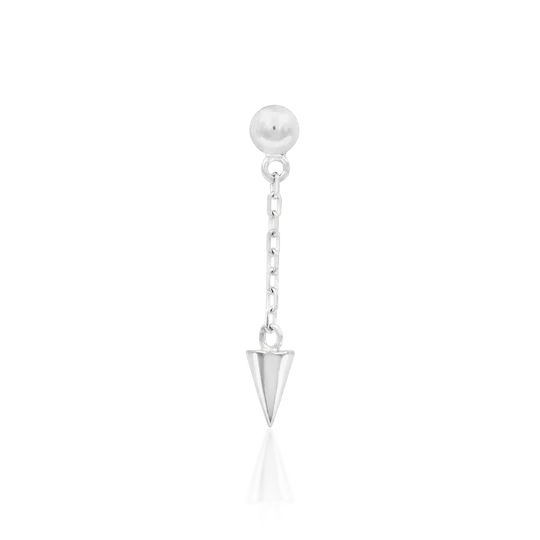 A 14k gold ball end, delicate dangle chain with a solid gold spike drop charm to keep things interesting. It is available in 4mm (3mm x 11mm) and 7mm (3mm x 18.5mm) and is available in 14k Yellow, Rose and White gold.